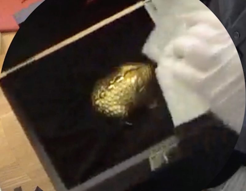 ▲ 체납자 G씨 자택 수색에서 발견된 황금두꺼비 [연합뉴스]