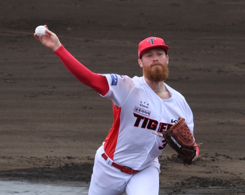 ▲kt와의 연습경기에서 선발 등판한 아담 올러 [KIA타이거즈]