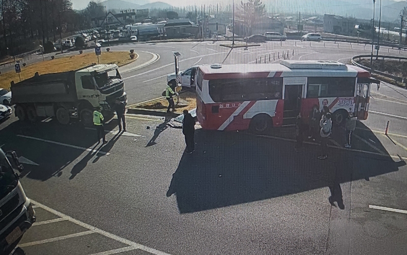 담양 회전교차로서 시외버스와 덤프트럭 충돌...4명 경상