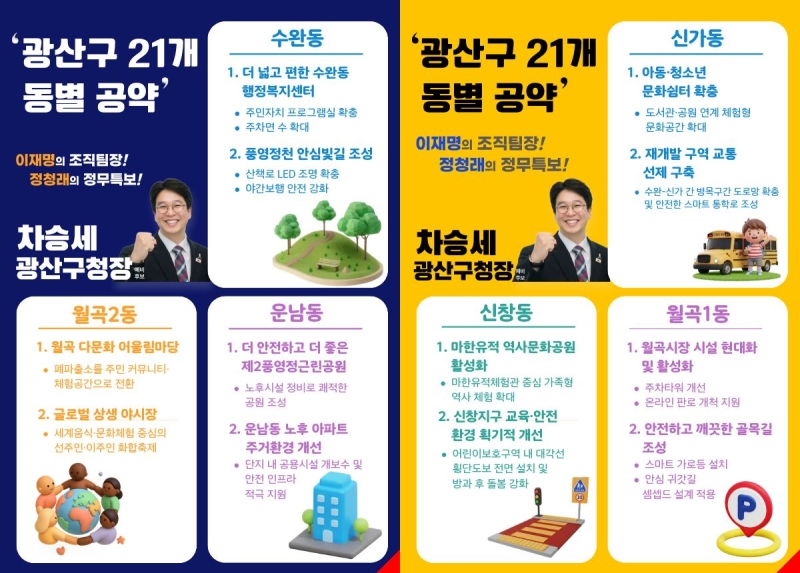 차승세 더불어민주당 광산구청장 예비후보가 광산구 21개 전 동을 대상으로 한 '자치동별 맞춤형 공약'을 발표했습니다.