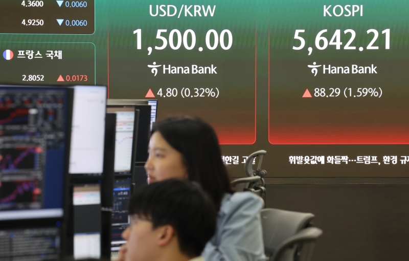 이날 코스피는 전장보다 88.29포인트(1.59%) 오른 5,642.21로 거래를 마감했습니다.