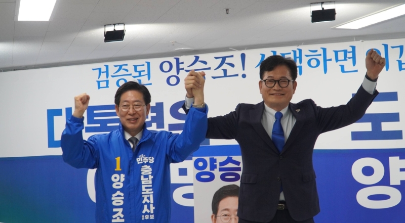 양승조 캠프에 따르면 송 전 대표는 이날 양 후보를 찾아 "이재명 정부의 실용 철학을 가장 충만하게 실현할 수 있는 적임자"로 규정하고 4년의 도지사 경험과 탄탄한 준비 과정을 거친 양 후보가 이재명 정부의 국정을 뒷받침할 최적의 파트너임을 강조했습니다.