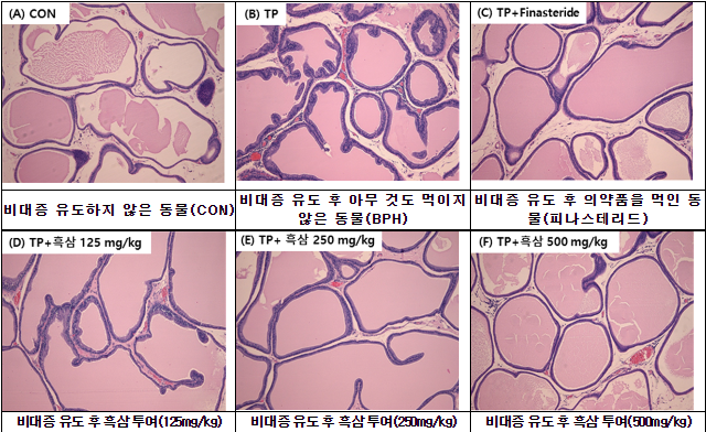 그 결과, 비대증을 유도한 뒤 흑삼을 먹이지 않은 동물모델과 비교해 전립선의 무게가 최대 16.9% 줄어드는 것을 확인했습니다.