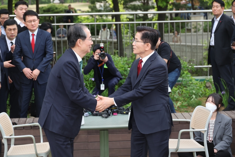 국민의힘은 9일 김문수 대선 후보와 무소속 한덕수 대선 예비후보의 단일화를 위한 선호도 조사를 마감합니다.