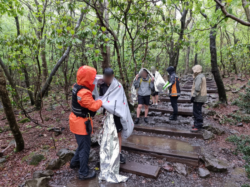 인솔 교사는 학생 1명이 저체온증을 호소하자 소방 당국에 구조를 요청했고, 한라산국립공원 측은 소방 당국과 협의해 이 학생에게 체온을 유지하도록 임시 조처했습니다.