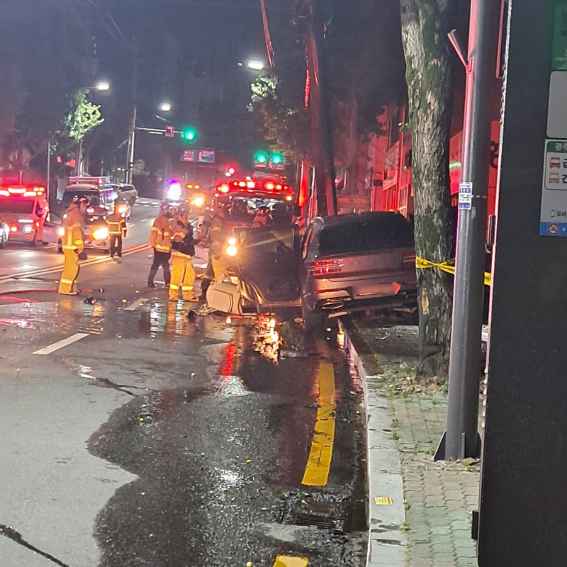 A씨가 운전하던 SUV 차량은 전신주를 들이받은 뒤 불이 났지만, A씨가 곧바로 몸을 피하면서 인명피해는 발생하지 않았습니다.
