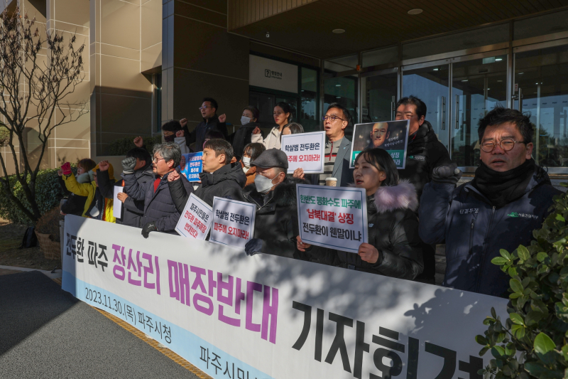 앞서 지난달 30일 겨레 하나 파주지회 등 경기 파주지역 11개 시민단체는 "장산리는 임진강과 북녘땅 개성이 내려다보이는 최고의 조망을 갖춘 장소이자, 각종 평화통일 행사를 열어왔던 남북 화해의 상징적인 장소"라며 "그곳에 쿠데타, 광주학살, 군부독재, 민중 탄압의 상징인 전두환이 묻힐 자리는 없다. 나아가 파주 그 어디에도 학살자 전두환을 편히 잠들게 할 곳은 없다"고 목소리를 높였습니다.