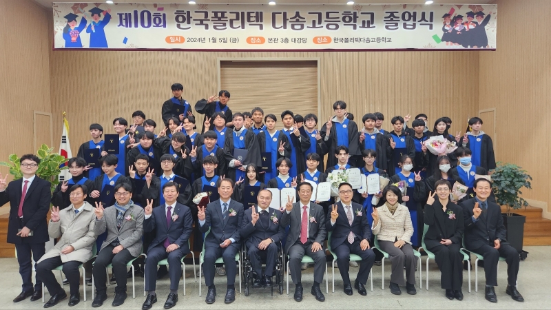 한국폴리텍대학은 다솜고 제10회 졸업식을 열고 42명의 졸업생을 배출했다고 밝혔습니다.