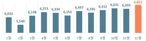 음주운전사고가 전체 교통사고 중 차지하는 비율은 7.3%이며, 12월에 사고가 가장 많았습니다.