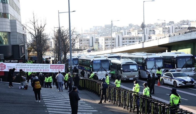 경찰은 수사관 외에도 관저 인근에 서울경찰청 소속 기동대 45개 부대 2,700여 명을 투입하고 기동대 버스 135대도 현장에서 배치했습니다.