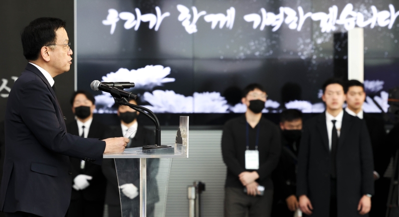 헌화식에서는 희생자 179명의 이름과 공항 1∼2층 계단에 남겨진 추모 메시지를 LED로 송출하며 애도의 시간을 가졌습니다.