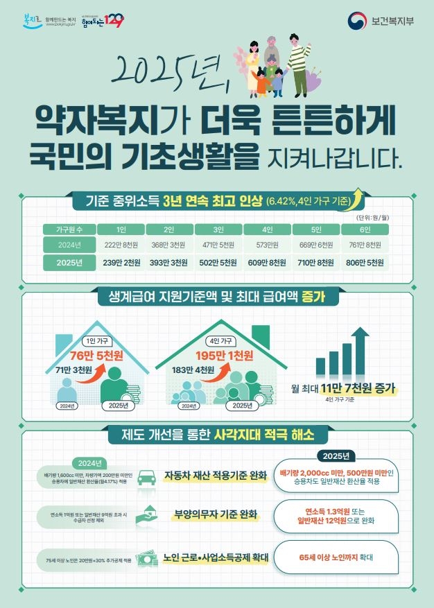 2025년 기준중위소득이 상향 조정되면서 기초생활보장 수급 대상이 14만 명으로 대폭 확대될 전망입니다.