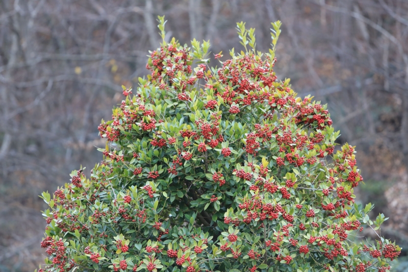 빨간 열매는 사랑과 박애 정신을 뜻하며, 꽃말은 행복과 평화를 의미합니다.