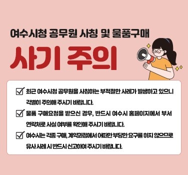 여수시는 전 직원에게 해당 사항을 전파하고 시청 누리집에 공무원 사칭 사기 주의 안내문을 게시하는 등 적극적인 피해 예방에 나섰습니다.