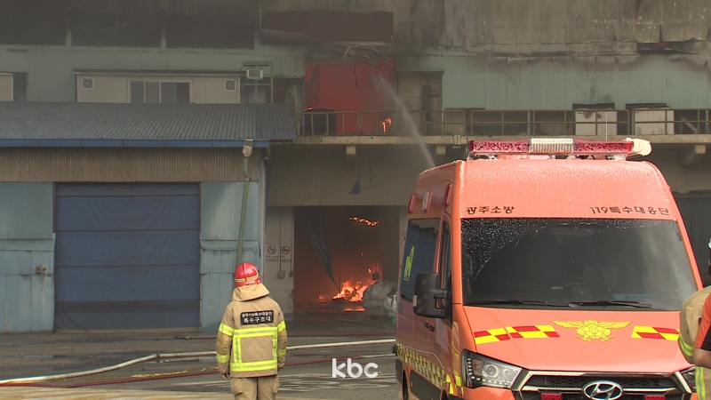 완진을 발표한 금호타이어 광주공장 화재 현장에서 잔불이 지속적으로 발생해 소방 당국이 다시 진화 작전에 나섰습니다.