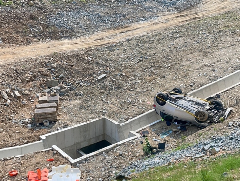 도로를 주행하던 승용차가 급회전 구간에서 추락해 운전자가 다쳤습니다.