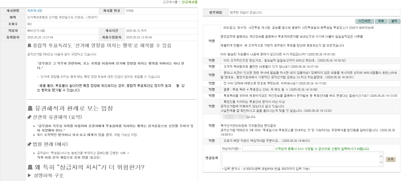 최근 북구청이 진행한 투표 독려 활동이 선거에 영향을 미치는 행위로 해석될 수 있다는 내용입니다.