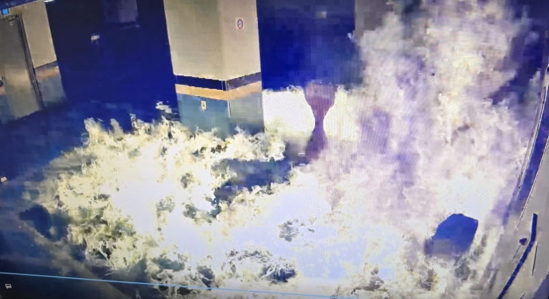 주상복합 아파트 CCTV에는 A씨가 인화성 물질을 승강기 앞에 뿌리고 불을 지르는 장면이 담겼습니다.