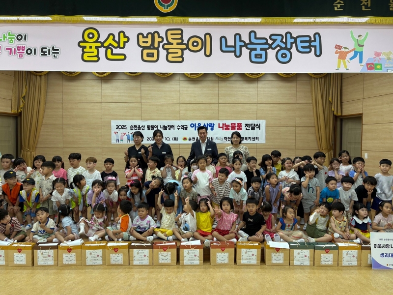 이번 나눔은 율산유치원 원생들과 학부모들이 함께 참여한 '순천 율산 밤톨이 나눔장터'에서 마련한 수익금으로 준비돼 의미를 더하고 있습니다.