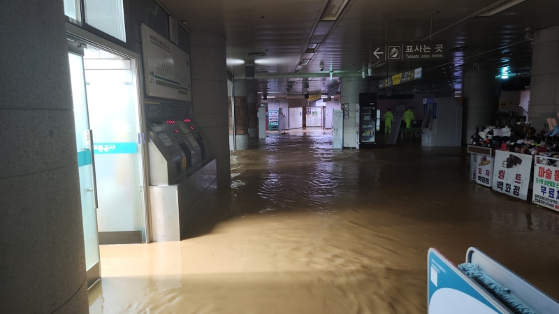 이날 오후 5시 30분쯤 광주 도시철도 1호선 상무역도 빗물에 잠겨 지하철이 무정차 통과하기로 했습니다.