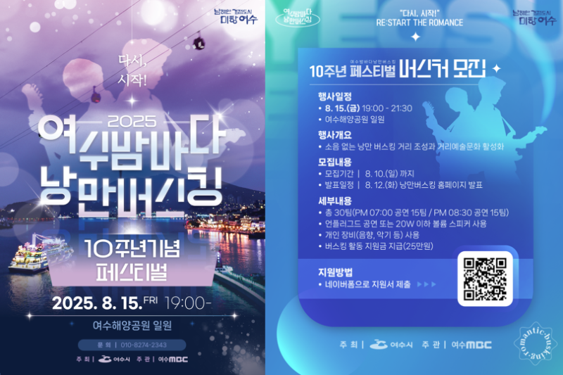 전남 여수시는 오는 15일 저녁 7시부터 밤 9시 반까지 해양공원에서 '2025 여수밤바다 낭만버스킹 페스티벌'을 진행한다고 5일 밝혔습니다.