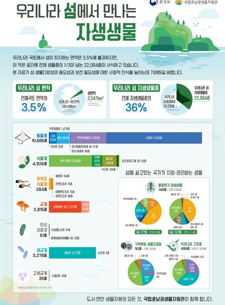 국립호남권생물자원관은 이번 조사 결과를 바탕으로 섬 생물다양성의 가치를 널리 알리기 위해 '우리나라 섬 생물다양성' 인포그래픽을 제작했습니다.