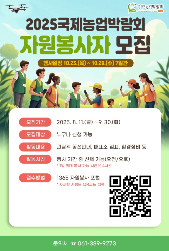 전라남도 국제농업박람회가 9월 30일까지 2025국제농업박람회 자원봉사자를 모집합니다,