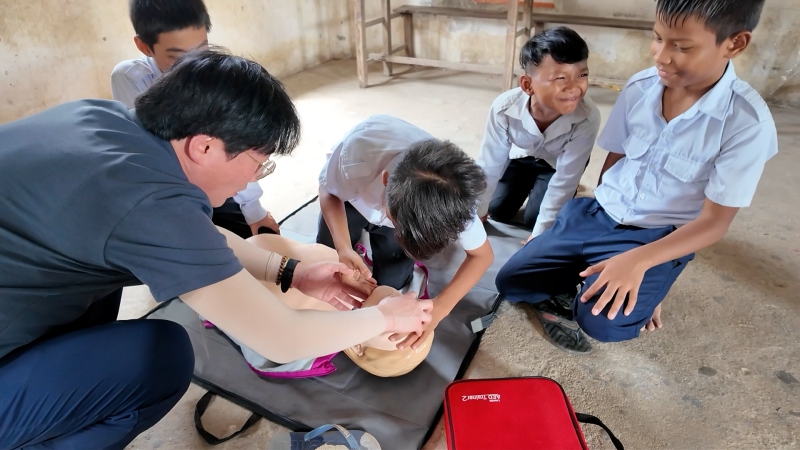 이번 봉사에는 호남대 응급구조학과 학생들이 현지 학생들을 대상으로 심폐소생술과 감염병 예방 교육을 펼쳤고, 광주골든로타리 회원들은 떡볶이·김밥·소떡소떡 등 K-푸드 나눔 행사를 열었습니다.