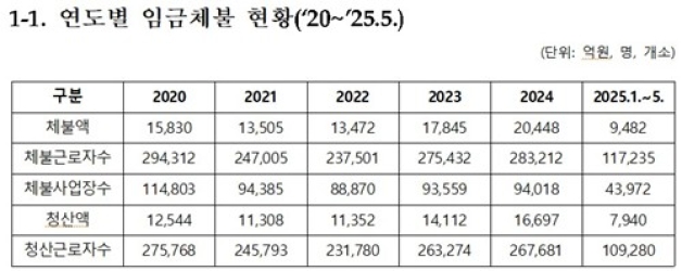 노동부는 임금체불액을 매년 15%씩 감축해 2030년(9762억 원)에는 1조 원 미만으로 낮추는 게 목표입니다.