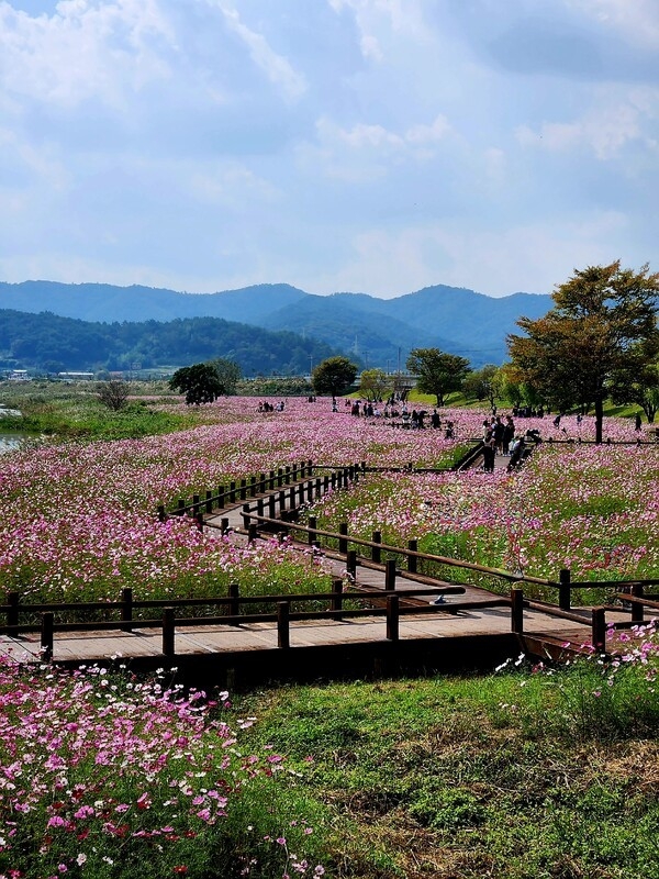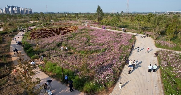 5만 7천㎡ 면적에 코스모스가 흐드러지게 피어 있어 추억을 남기려는 방문객들의 발걸음이 해마다 끊이지 않고 있습니다.