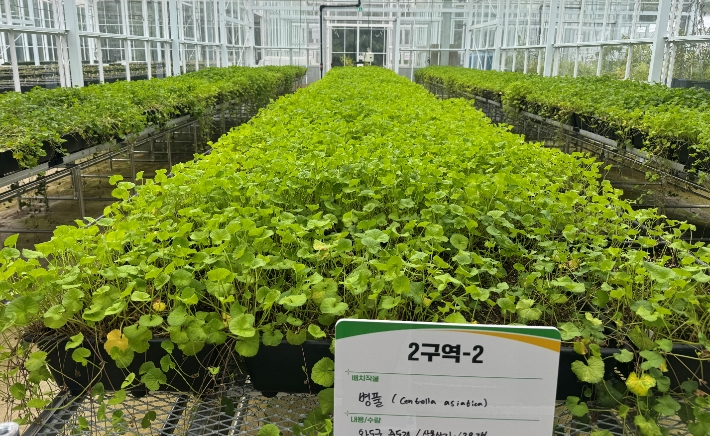 이에 따라 전남도 산림연구원은 병풀 자생지를 직접 조사해 우량 개체 자원을 확보했으며, 그중 생장량과 기능성 물질 함량이 뛰어난 병풀을 선발해 신품종 출원과 재배 표준화를 위한 연구를 진행하고 있습니다.
