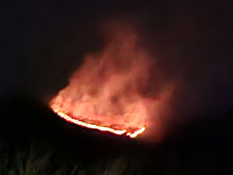 이날 오후 6시 26분경 강원 양양군 서면 서림리에서 발생한 산불은 진화작업에도 불구하고 바람을 타고 불길이 조침령 5부 능선 인근까지 500여m 길이의 띠를 이뤄 아래로 번지는 것으로 확인됐습니다.