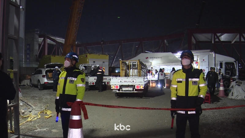 앞서 이날 낮 1시 58분쯤 광주 서구 치평동 옛 상무소각장 부지에 건설 중이던 광주대표도서관 공사 현장에서 콘크리트 타설 중 구조물이 무너져 내렸습니다.
