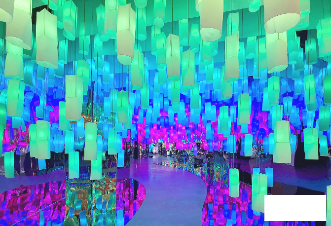 빛의 호수의 빛은 천개의 청사초롱, 호수는 거울로 꾸며져 있습니다.