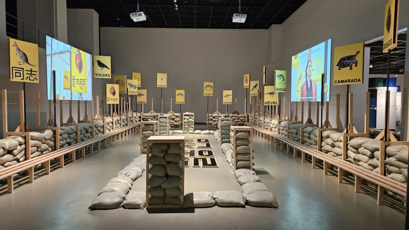 모래주머니, 석유 배럴, 철조망 등으로 이루어진 군사 전선과 식민 시대부터 현재까지 멸종해 온 동ㆍ식물 이미지가 몰입형 설치물로 전시됩니다.