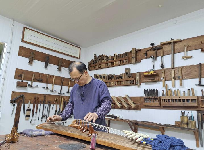 고수환씨는 국가무형문화재 현악기 제작 보유자였던 고(故) 이영수(李永水, 1929년생)씨로부터 그 기법을 전수받아 48년 동안 현악기 제작 기술을 연마했습니다.