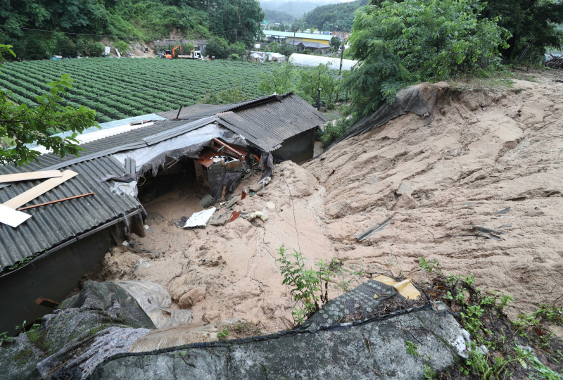 전날 새벽 4시 43분쯤 경북 영주에서 산사태가 주택을 덮쳐 집 안에 있던 14개월 여아가 숨졌습니다.