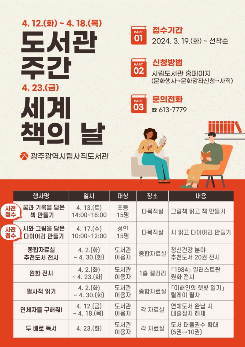 강연과 체험 행사 접수는 광주시립도서관 홈페이지에서 할 수 있습니다.