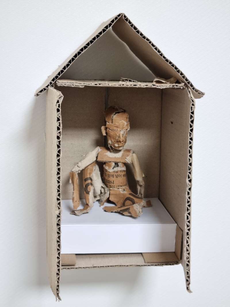 작가는 레지던시 공간을 '잠시 머무는 집'으로 바라보며, 이곳에서의 유동적이고 일시적인 관계를 허술하지만 따뜻한 집의 형태로 표현했습니다.