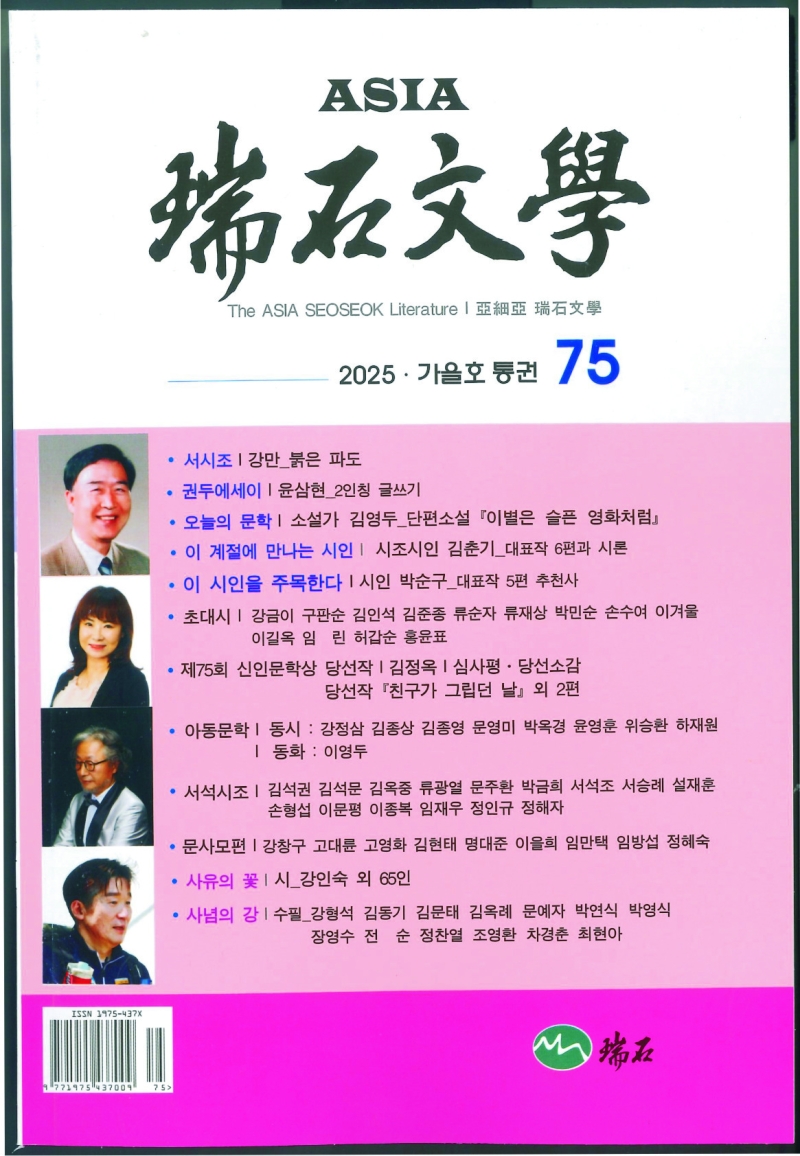 또한 신인문학상 당선작에는 김정옥 씨의 시 친구가 그립던 날 외 2편이 뽑혔습니다.