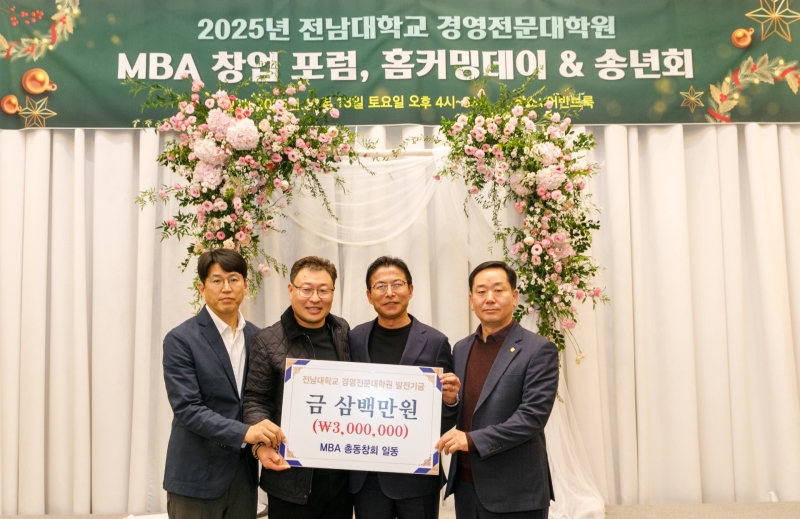 특히 이날 행사에서 정경식 MBA 총동창회장과 임원진이 전남대 경영전문대학원의 교육·연구 발전을 위해 300만 원의 발전기금을 전달해 큰 의미를 더했습니다.