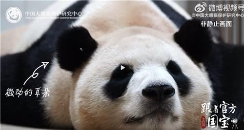 자장가를 배경음악으로 한 이 영상은 얼핏 정지된 화면처럼 보이지만 자세히 들여다보면 푸바오가 잠든 채 양쪽 귀를 살짝살짝 움직이는 모습을 볼 수 있습니다. 센터 측은 영상 속에 '미동(微動)하는 귀'란 자막도 넣었습니다.