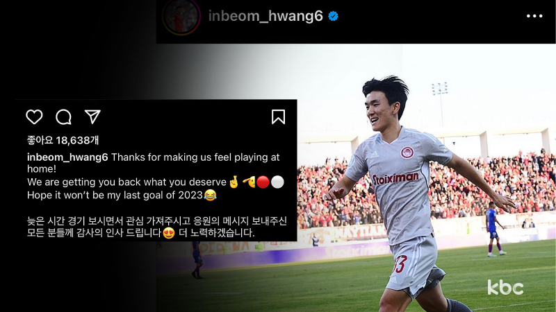 그리스 명문 올림피아코스에서 뛰고 있는 황인범은 8일(현지시각) 그리스 볼로스의 판테살리코 스타디움에서 열린 2022-2023 수페르리가 17라운드 볼로스와의 원정 경기에서 환상적인 중거리슛을 터트렸습니다.