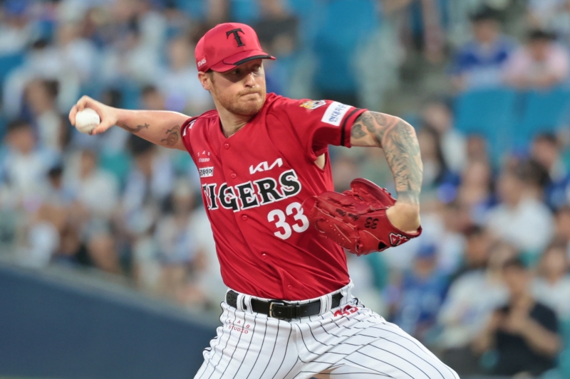 KIA 선발 아담 올러는 5이닝 4피안타 7탈삼진 1실점 호투로 승리의 기반을 닦았습니다.