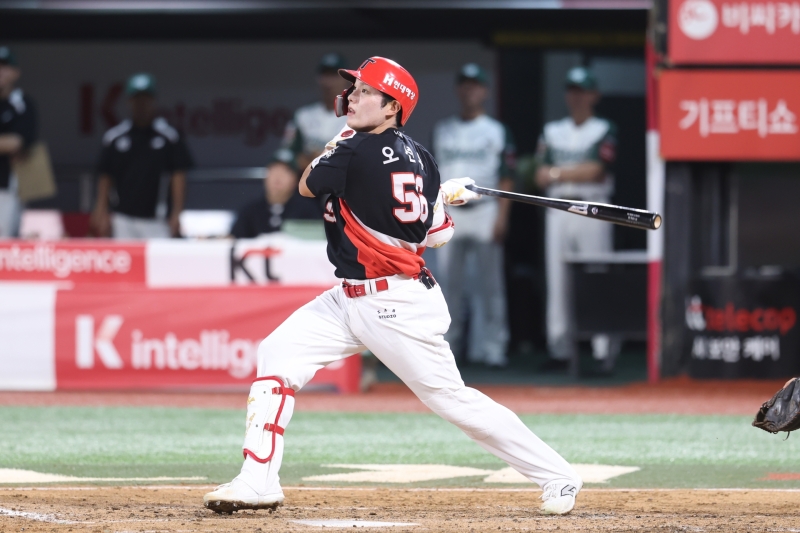 중견수로 나선 김호령은 홈런 1개를 포함해 3안타 5타점으로 활약했습니다.0의 균형을 이어간 승부는 5회 말 KT가 1점을 먼저 기록하며 깨졌습니다.