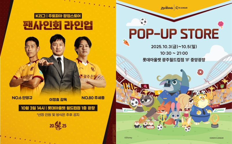 사인회가 열리는 장소는 한국프로축구연맹이 주최하는 'K리그-주토피아 앙코르 팝업스토어' 현장으로, 지난 7월 서울에서 성황리에 열린 뒤 팬들의 성원에 힘입어 이번에는 광주에서 10월 3일부터 5일까지 3일간 운영됩니다.