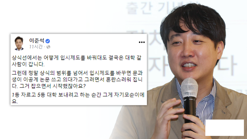 이 전 대표는 14일 자신의 페이스북에 "상식선에서는 어떻게 입시제도를 바꿔대도 결국은 대학 갈 사람이 간다. 그런데 정말 상식의 범위를 넘어서 입시제도를 바꾸면 문과생이 이공계 논문 쓰고 의대 가고 그러면서 혼란스러워 진다"고 적었습니다.