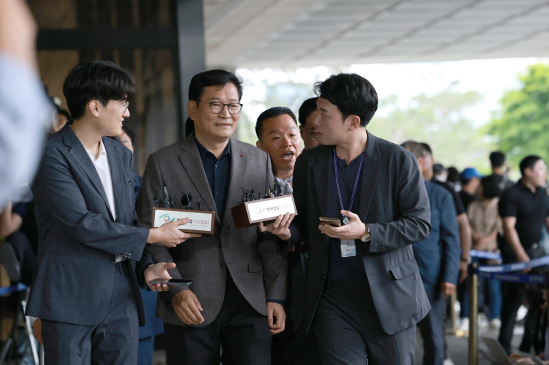 송영길 전 대표는 오늘(7일) 오전 9시 20분쯤 서울중앙지검에 도착해 면담을 요청했지만 받아들여지지 않았습니다.