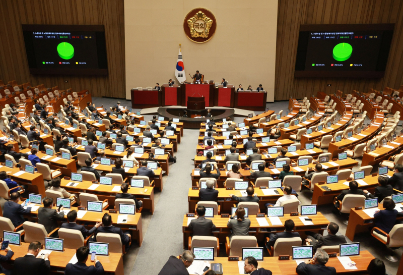 9일 오후 국회 본회의에서 민주당 등 야당들은 노랑봉투법으로 불리는 노동조합 및 노동관계법 개정안과 방송3법을 단독으로 의결했습니다.