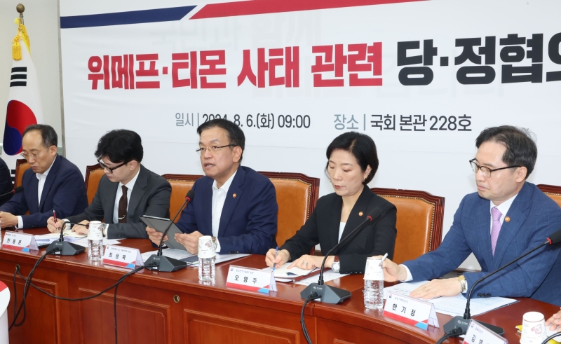 김상훈 국민의힘 정책위의장은 6일 국회에서 열린 '위메프·티몬 사태 관련 당정협의' 이후 기자들과 만나 "소비자의 피해 구제를 위해 일반 상품의 경우 신용카드사와 전자지급결제대행(PG)사를 통해 이번 주 중 환불이 완료되도록 지원하기로 했다"고 밝혔습니다.